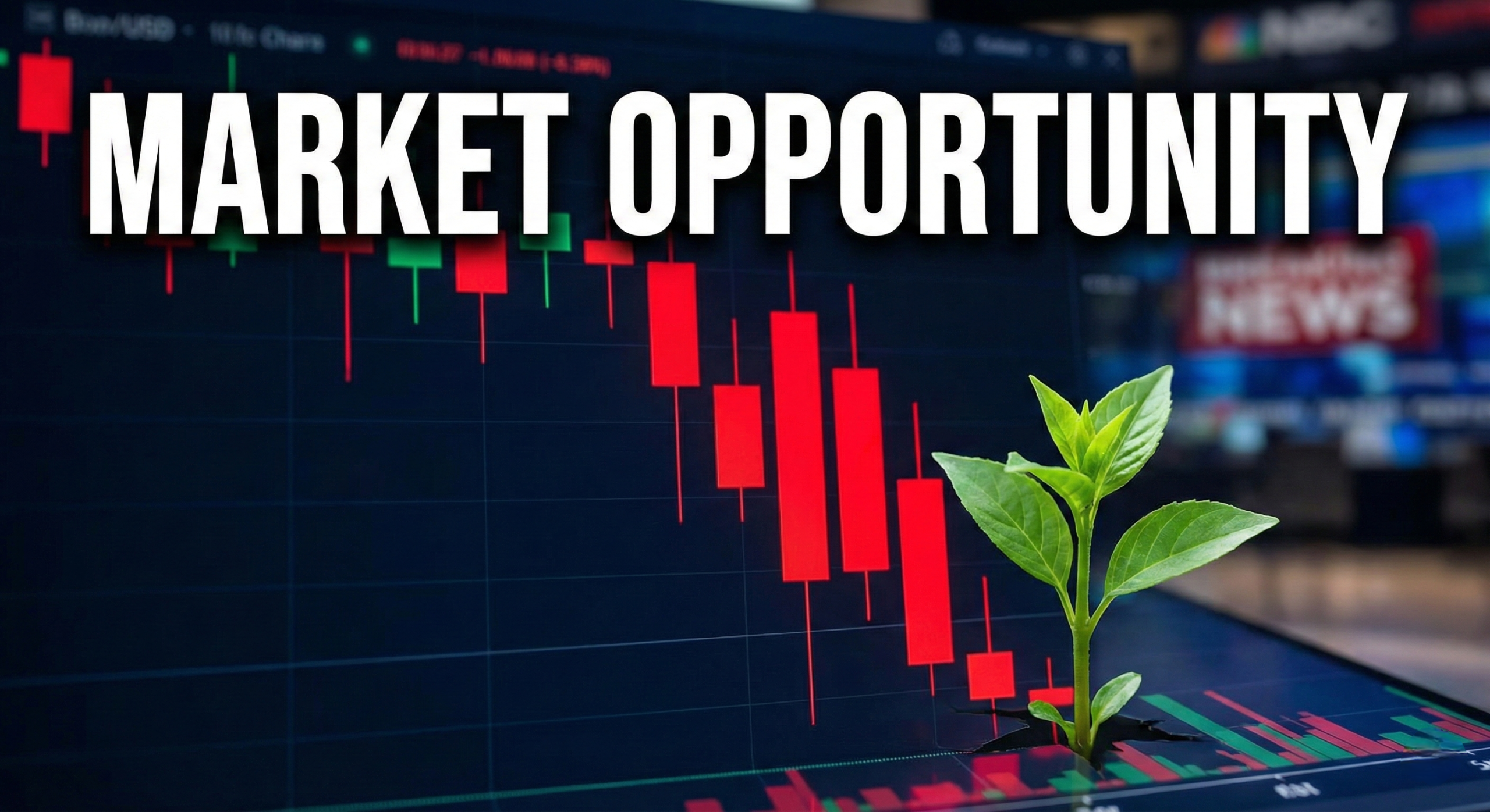 ​[Image Placeholder 1: A dramatic, high-quality image showing a cryptocurrency chart with red candlesticks going down, but a green plant
